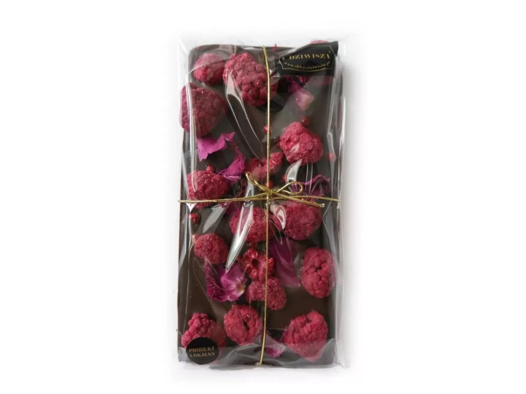 MLÉČNÁ ČOKOLÁDA S MALINAMI, RŮŽOVÝM PEPŘEM A OKVĚTNÍMI LÍSTKY